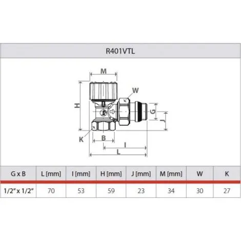 Robinets radiateur GiacominiRobinet équerre thermostatisable R401VTL – M30x1.5 Pour têtes thermostatiques à raccordement M30 x 1,5 mm. Série fer. Température maximum de l’eau : 110 °C. Pression maximum de l’installation : 10 bar. Livré avec capuchon de protec Fabrication Européenne