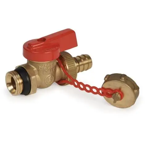 Robinet à bille avec raccords mâles avec support de tuyau auto-obturant. Convient pour l’eau pour les systèmes de chauffage / refroidissement. et les gaz non dangereux. En laiton UNI EN 12165 CW617N. Passage standard. Poignée à levier courte en aluminium peint en rouge. Tige de commande avec double joint torique. Température minimale de fonctionnement: -20 ° C avec des solutions à 50% de glycol. Température maximale de travail: 90 ° C. Pression de service maximale à 20 ° C avec de l’eau et des gaz non dangereux: 1,0 MPa (10 bar).