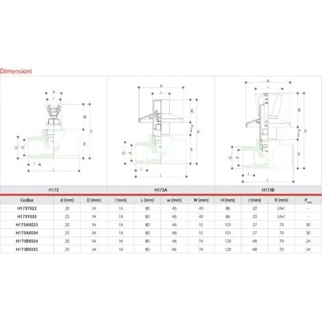 Le robinet d’arrêt H173 a été conçu pour des utilisations spécifiques sur les réseaux de distribution d’eau potable à des fins sanitaires. Ce modèle est ajouté aux composants en polypropylène Giacogreen comme une alternative valable à la vanne d’arrêt H170 avec des débits élevés avec de faibles pertes de charge mais anormales par rapport aux normes typiques du produit. La conformation particulière du H173 à connexions légèrement décalées est le résultat d’une étude visant à obtenir un produit aux performances particulièrement intéressantes, capable de satisfaire toutes sortes de besoins même en présence de faibles pressions de réseau.