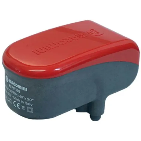 Servomoteur Giacomini pour la commande des vannes de zone R276, R277, R278, R279 et de la vanne de dérivation R279D, équipé d’un fin de course auxiliaire. Alimentation électrique 230V. Fréquence 50 Hz.
