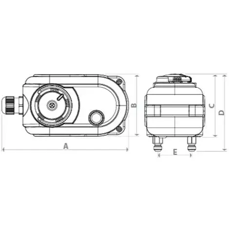 Servomoteur Giacomini pour la commande des vannes de zone R276, R277, R278, R279, R276B et de la vanne de dérivation R279D, équipé d’un bouton pour la commande manuelle et d’un fin de course auxiliaire. Alimentation électrique 230V. Fréquence 50 Hz.