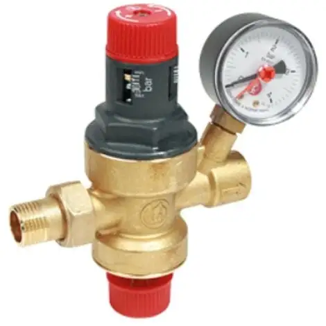 Groupe de remplissage automatique Giacomini à installer sur le tuyau d’adduction d’eau dans les installations de chauffage/refroidissement à circuit fermé. Taille 1/2 « M x 1/2 « F – avec manomètre.