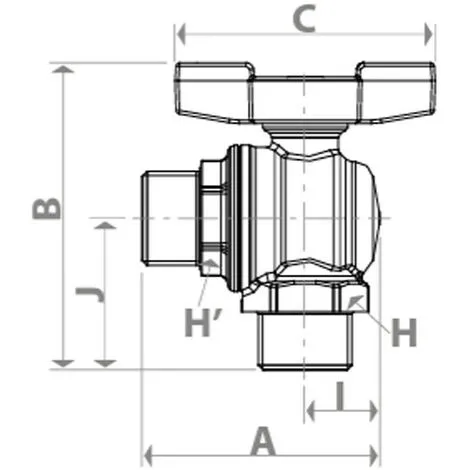 Robinet à boisseau sphérique d’angle Giacomini R782G, avec raccords filetés mâle – mâle. Passage intégral. Connexions 1/2 « M (ISO 228) x 1/2 « M (ISO 228).