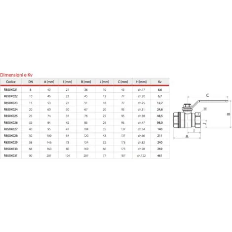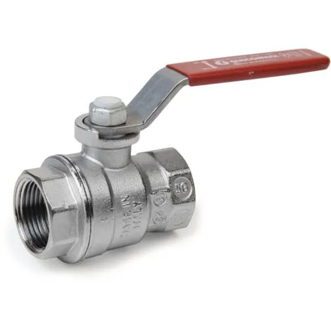 Robinet à tournant sphérique avec raccords femelle-femelle. Convient pour l’eau pour les systèmes de chauffage/refroidissement, les gaz non dangereux et les hydrocarbures liquides. En laiton chromé UNI EN 12165 CW617N. Passage total pour 1/4″, 3/8″, 1/2″, 3/4″, 1″, 1-1 / 4″, 1-1 / 2″, 2″; passage standard pour 2-1 / 2″, 3″, 4″. Poignée à levier en acier avec traitement anti-corrosion et revêtement PVC rouge