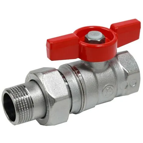 Robinet à bille Giacomini, avec raccords union femelle-mâle. Raccords G 3/4 « F x G 3/4 « M. Taille 3/4 « F x 3/4 « M.